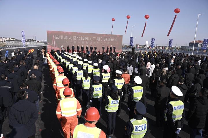 今天上午,灣北二期開通儀式在汾湖主線站區(qū)域舉行,長(zhǎng)三角生態(tài)綠色一體化發(fā)展示范區(qū)執(zhí)委會(huì)、江蘇省交通運(yùn)輸廳、蘇州市人民政府、浙江省交通運(yùn)輸廳、浙江省高速交警總隊(duì)、上海市交通委綜合交通處等相關(guān)領(lǐng)導(dǎo),市委書記張兵,市委副書記、市長(zhǎng)毛宏芳,市人大常委會(huì)主任劉冬生,市政協(xié)主席高玲慧等出席活動(dòng)。張兵宣布杭州灣大橋北接線二期正式開通!