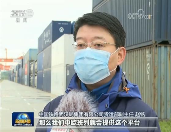 總臺(tái)央視記者 金珠:我現(xiàn)在是在中鐵聯(lián)集武漢中心站,這是自疫情防控以來(lái)從武漢開(kāi)出的首趟中歐班列,它也標(biāo)志著武漢的中歐班列恢復(fù)了常態(tài)化的運(yùn)行。