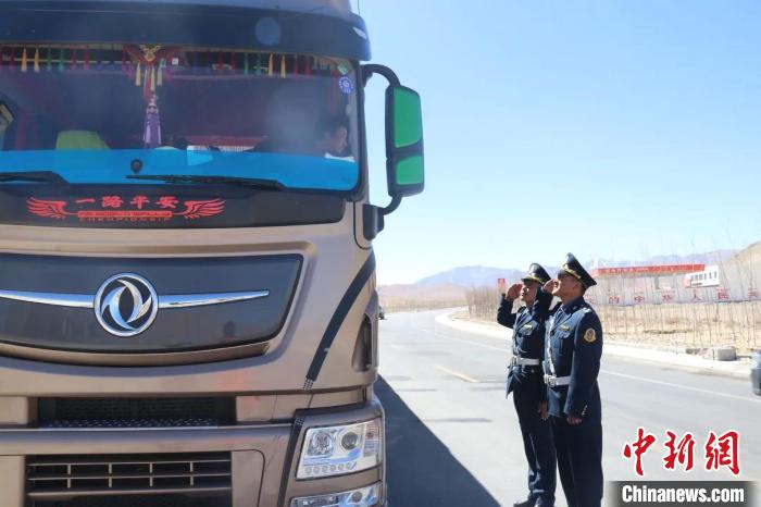 圖為阿里公路部門路政執(zhí)法人員檢查貨運(yùn)車輛。西藏自治區(qū)路政管理局供圖